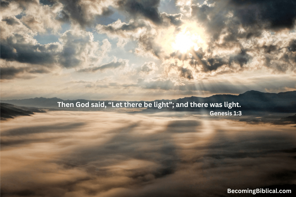 In the beginning when only darkness appeared, God speaks, and his will is accomplished. This, without employing a special process or method, and without utilizing assistance from other sources. At the mere utterance of God’s word, the dense accumulation of vapors forming thick murky clouds dispersed, and light diffused over the great expanse of waters. By God’s command, light became visible. Only his word was necessary. Simply by speaking, the Supreme One willed light into being.